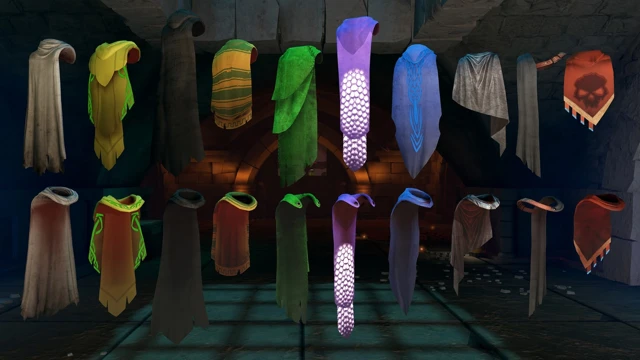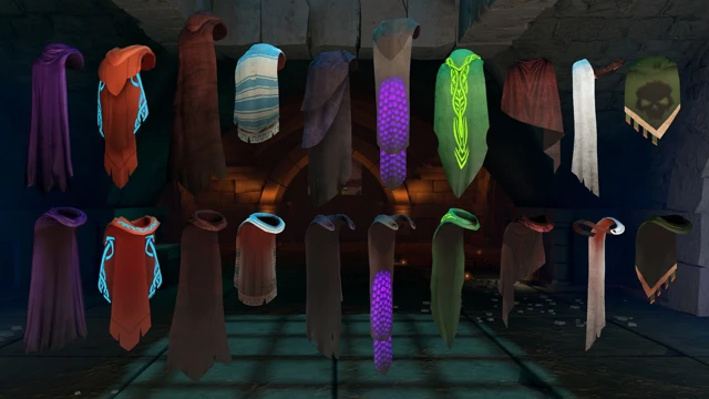 Level up your dungeon hero with this NEW unique collection of capes and cloaks, from regal and flowing to rugged and battle-worn designs. Mix and match with other cosmetics to create a look that’s uniquely yours. Stand out in the depths of the dungeons with style! The full pack includes: