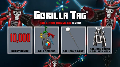 Turn your birthday party into a rambunctious battle with the Balloon Brawler Pack! Including four new exclusive items and 10,000 Shiny Rocks!