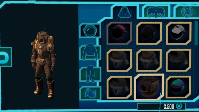 Purchase includes Diver Suit Helmet, Chest, and Leg Pieces awarded in the Cosmetics shop.