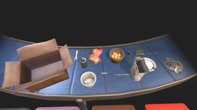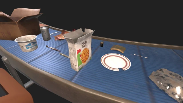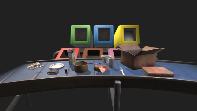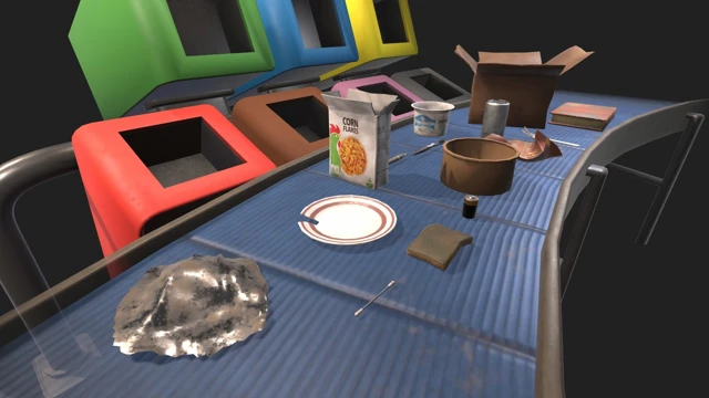 The following waste items will be added: Damaged plate, Food packaging, Flyer, Book, Sponge, Battery, Pen, Pot of crème fraîche, Cereal box, Fork, Cotton swab, Can, Toothbrush, Aluminum foil, Moving box.