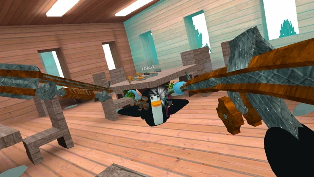 Take to the skies with your new rideable dragon! Shoot fireballs and knock penguins away!
