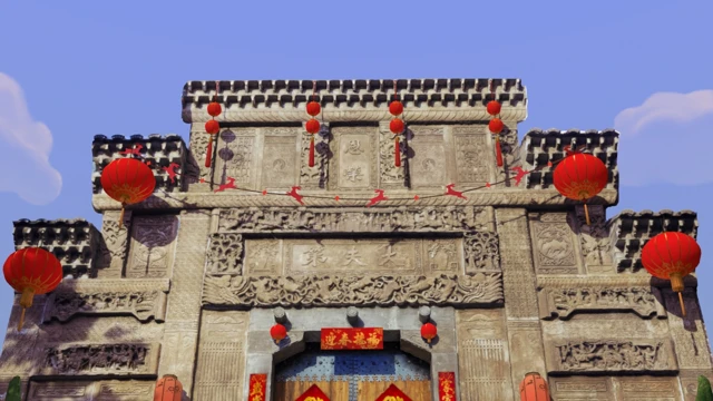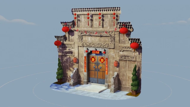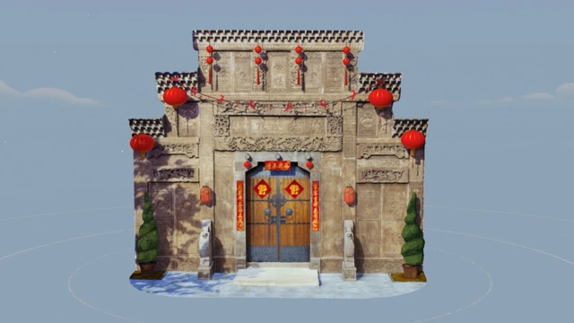 Celebrate the Year of the Rabbit with a richly decorated entrance in Beijing, welcoming the year of the rabbit, 2023! The lavish facade features intricate details complemented by vibrant red decorations - a popular color in Chinese culture that symbolizes vitality, luck, joy, and prosperity.