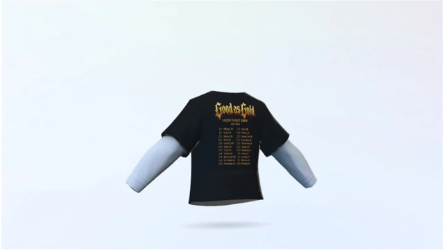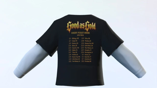 A vintage-inspired graphic tee designed with classic 1970s rock aesthetics. Features distressed artwork and concert style illustration for a timeless studio look. Designed as a cosmetic avatar item for use across supported virtual environments.