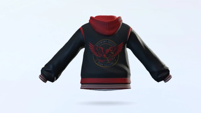 A varsity-style jacket featuring sharp contrast lines and a custom “Eagles” emblem. Includes detailed front lettering and a stylized back logo for a bold, layered look. Designed as a cosmetic avatar item for use across supported virtual environments.