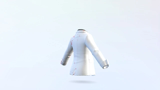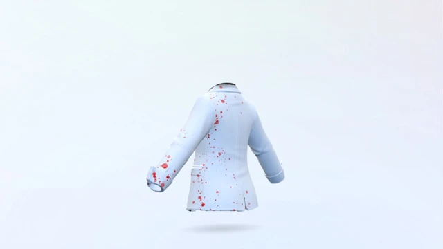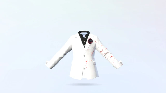 A formal avatar blazer featuring a custom splatter-style design.