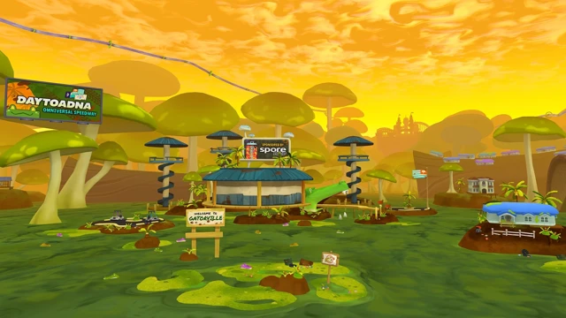 Welcome to Sporelando, a swampy slice of suburban sprawl where the air is thick, the golf carts are alive, and the gators have the right of way!