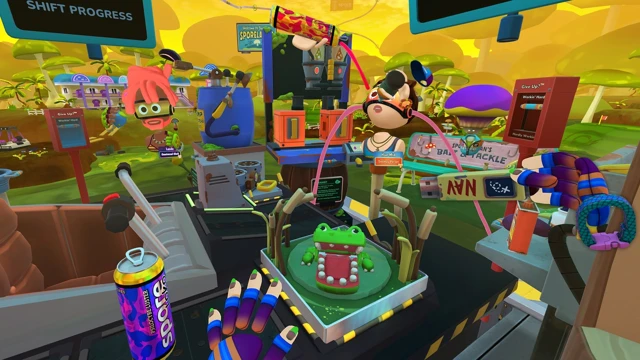 Three exits past the theme parks, this overgrown dimension is home to the Sporidians, sentient fungi who thrive in humidity, chaos, and unfortunate tattoos. Their world wasn’t planned, they let it blossom. There’s only one perfect vehicle for swamp-life: bio-mechanical golf carts. These strange hybrids of engine, organism, and swamp ingenuity run on mycelium networks, improvised parts, and whatever creature crawled into the machinery last week. When hunger strikes, it’s your turn behind the counter. Fire up the microwave and serve up swamp favorites like gator nuggets, grilled roadkill, and plenty of ice-cold SporeLoko!