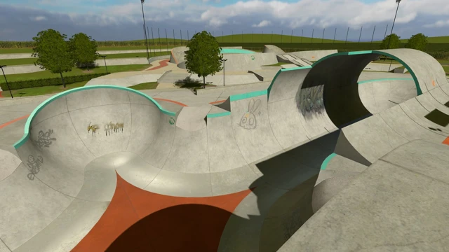 Skatepark natural: carve bowls, boost quarters, nail transfers, and chain stylish lines.