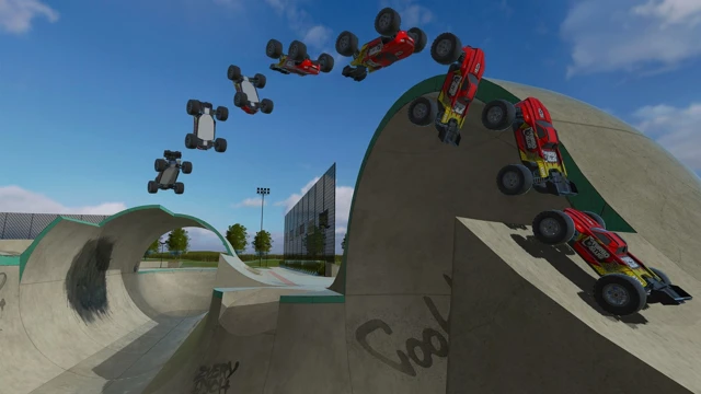 If racing is about perfect lines, The Basher is about perfect airtime. Build the park of your dreams, send something outrageous, and land it with style.