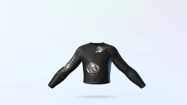 Torn black shirt featuring a mechanical underlayer design, created for avatar customization in supported Meta environments.
