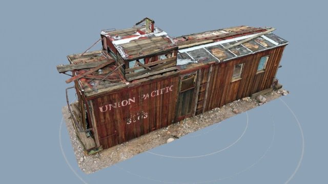 Assemble a piece of history with the Union Pacific Railroad Car puzzle! Assemble both the interior and exterior of this vintage weathered train car, set in the abandoned mining ghost town of Rhyolite, NV.