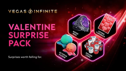 Love is in the air at Vegas Infinite! Boost your bankroll with 300k Chips to woo Lady Luck, check your vibe with the enchanting Mood Ring, and grab the squishy Octopus Plushie that flips from happy to angry with a squeeze, then deal your next hand with the pixelated Lovers Cardback. It is the ultimate collection for spreading joy or simply treating yourself!