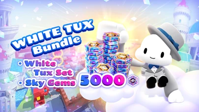 Grab the exclusive "White Tux" outfit for Pluffee! This premium bundle also includes 5,000 SkyGems, offering exceptional value.