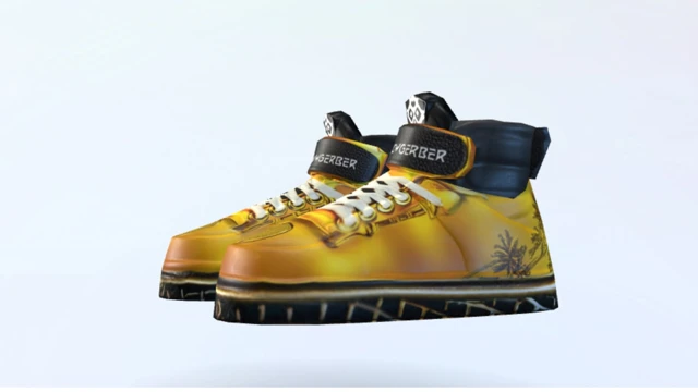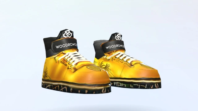 Gold high-top sneakers designed by Woodrowgerber for avatar use.