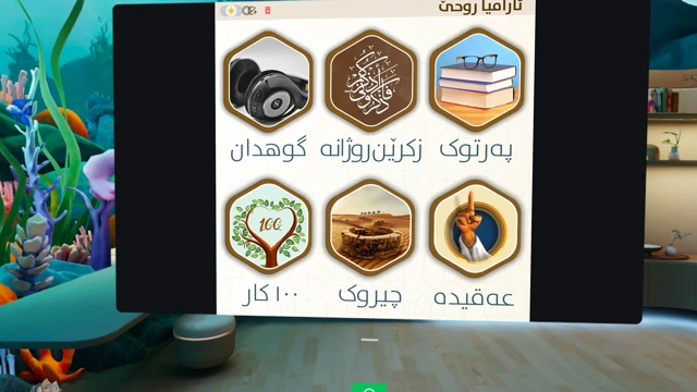 دوو: پەرتوكخانە، ل ڤى بەشى مە پتر ژ 200 پەرتوكێن ئاينى يێن هەمە جور ب بادينى يێن كرينە تێدا دگەل بەرگێن وان ب شێوێ