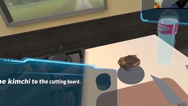 2. Transfer the kimchi to the cutting board and chop it with the knife.