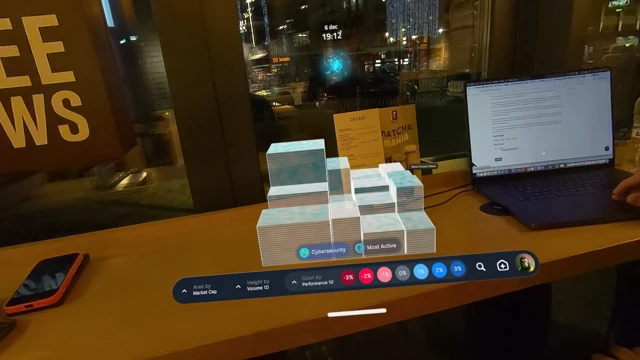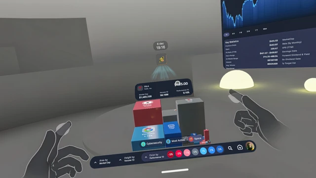 Interactive bar, and line charts displayed in three-dimensional space. rotate, and scale graphs with hand gestures for a highly intuitive experience. Real-time price data streaming with customizable timeframes.