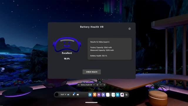 This application allows you to determine the battery status of your VR headset. For the measurement to be taken, the headset must be fully charged.