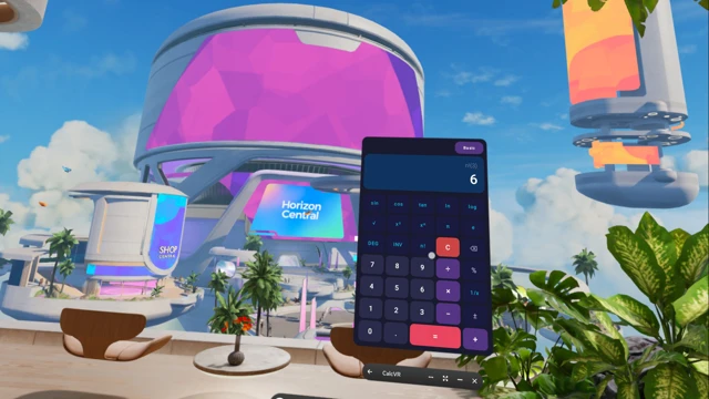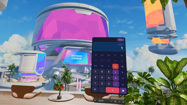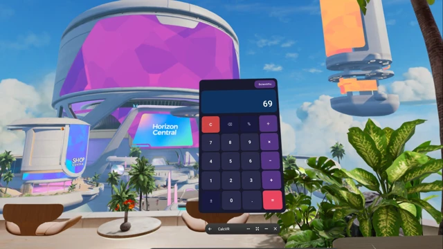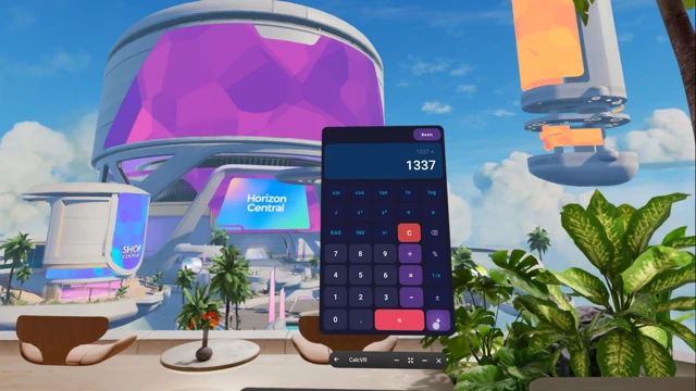 Built for VR: Runs as a system panel alongside other apps, resizable window, hand tracking support, dark UI theme optimized for VR readability, high-precision math engine with 15-digit accuracy.