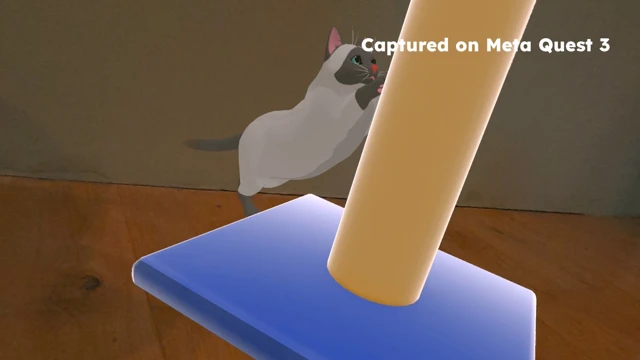 In mixed reality, your cat roams your real room. Chase toys, blow bubbles, and place cat beds and accessories to create the ultimate cat-friendly space.