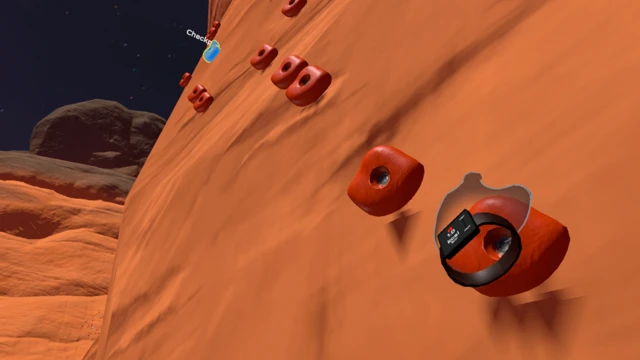 ● The Natural Feel of Climbing: No controllers needed. With Hand Tracking, use your own hands to grab the holds and make your way up. Moving with your own hands creates an intuitive sense of immersion.