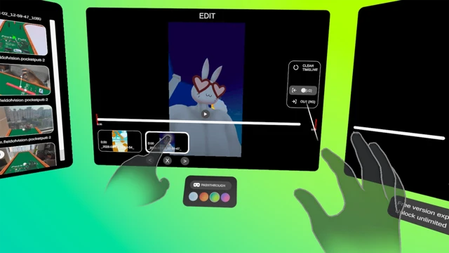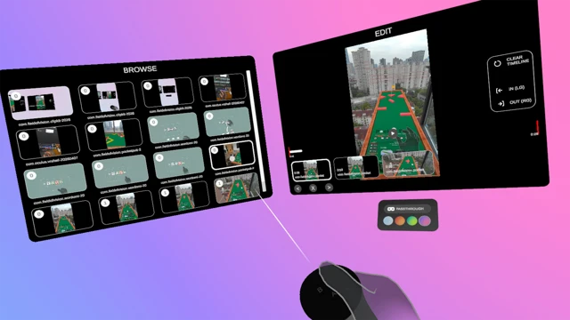 ClipKit lets you import clips straight from your Quest library, trim your footage, arrange videos in sequence, and export shareable edits without leaving your headset. Perfect for gameplay captures, mixed reality recordings, and quick social clips. No PC. No file transfers. No complicated setup.