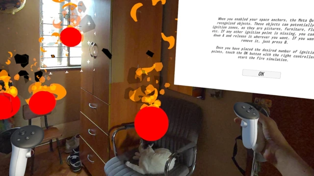 Extinguisher XRtool is an extended reality tool that lets you build your own custom fire control environment, choosing the ignition points you want, right inside your personal space and across any other rooms you've scanned with Meta Quest. But more than that, it serves as a complementary training solution for any organization or workplace looking to effectively prepare their employees for fire emergencies. With Extinguisher XRtool, workers don't just learn theory, they practice hands-on fire control, from locating potential hazards to properly using an extinguisher in real time, all within their actual physical environment. Whether it's an office, a warehouse, a school, or any other area, this tool transforms any scanned space into an immersive fire safety simulator, helping teams build confidence and muscle memory before an emergency ever happens.
