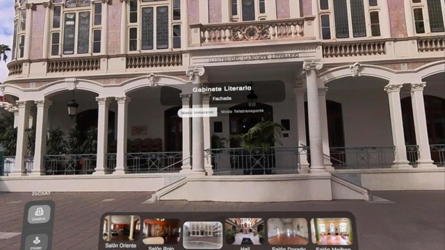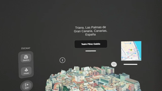 Immerse yourself in a virtual reality experience that allows you to explore different places and iconic buildings in the city of Las Palmas de Gran Canaria through 360° panoramic photographs. From a three-dimensional map, you can fly over the area, locate points of interest, and freely access the interior of each space.
