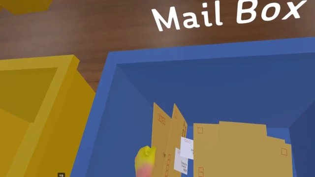 4.Check the mail on the desk. If the address is correct, put it in the yellow basket on the right; if incorrect, put it in the brown basket on the left.