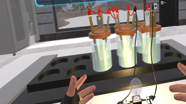 1.Connect the copper and zinc plates by plugging the wires into the designated locations on the desk.