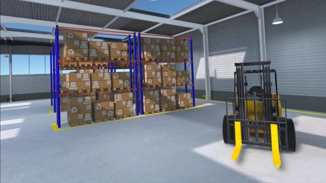 ⁃ Interactive warehouse with different objects, machines, racks
