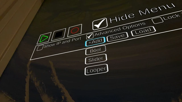 This application allows you to set up a hands-free interface overlaid on top of the real world which you can operate using just the direction you are looking. The headset broadcasts OSC messages to the IP and Port of your choosing.