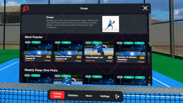 🎯 Train on a Variety of Drills – Work on key shots like serves, dinks, drops, drives, and speed-ups through a growing library, with new drills added every month.
