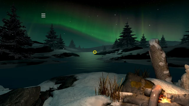 River: The Northern Lights shine on a snowy Canadian campfire.