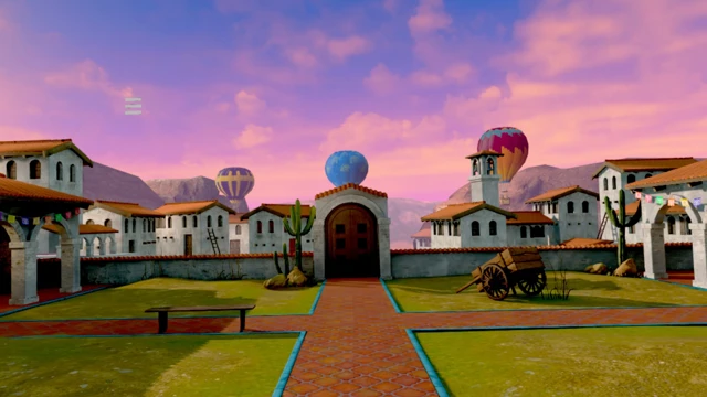 Villa: A rustic New Mexican village overlooks a fleet of hot air balloons.