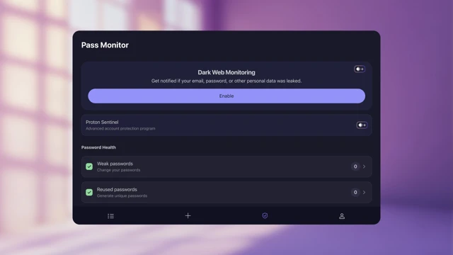 Proton Pass includes secure vaults for organizing and sharing passwords, credit cards, and notes with trusted contacts. All shared data stays fully encrypted, and you can revoke access at any time. Built-in Pass Monitor helps you find weak or reused passwords, alerts you to data breaches, and highlights accounts missing 2FA.
