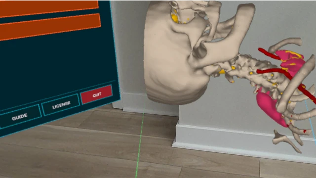 Process your own DICOM scans on desktop with the companion RegionalAR Desktop app, then wirelessly transfer them to your Quest over local WiFi. Auto-discovery means no IP entry needed. A Head and Neck CTA sample volume is included so you can start exploring immediately.