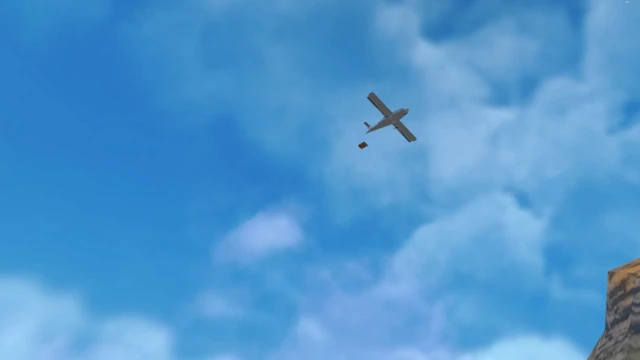 2 Use the teleport gun to move the bag of sugar that fell from the airplane.