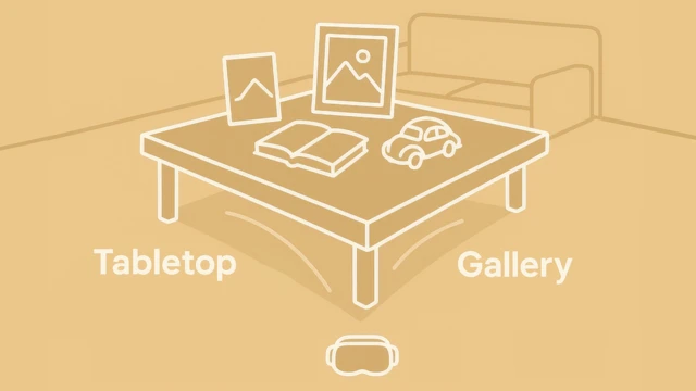 Tabletop Gallery transforms your room into an interactive mixed-reality sharing platform for immersive media. Built exclusively for XR, it brings photos and videos to life right on your virtual table.