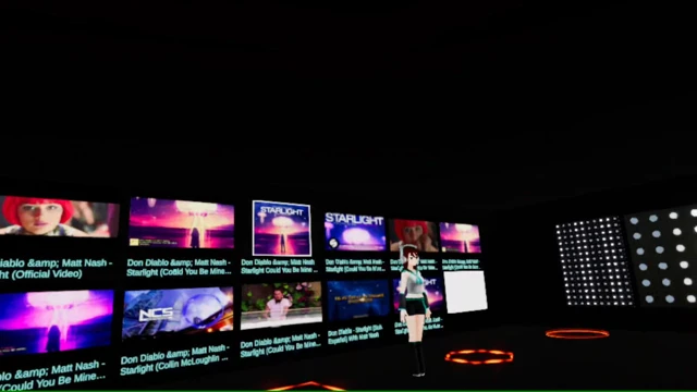 Virtual Disco is a VR Experience that let you enjoy your favorite music while you have a nice disco environment with LED Disco Panels on it and girl avatars rotating, you have a Big screen to play your favorite Youtube videos, to do so you can either enter a Youtube video URL, or search for a video.