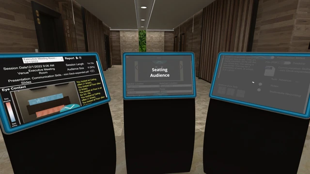 Step in front of a virtual audience and practice delivering talks, pitches, lectures, or meetings in a safe and controlled setting. Adjust the venue, audience size, and audience behavior to match your needs — from small supportive groups to large formal settings.