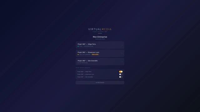 VirtualMedia VR est destiné aux clients professionnels de VirtualMedia. Un compte d'accès fourni par VirtualMedia est nécessaire pour utiliser l'application.
