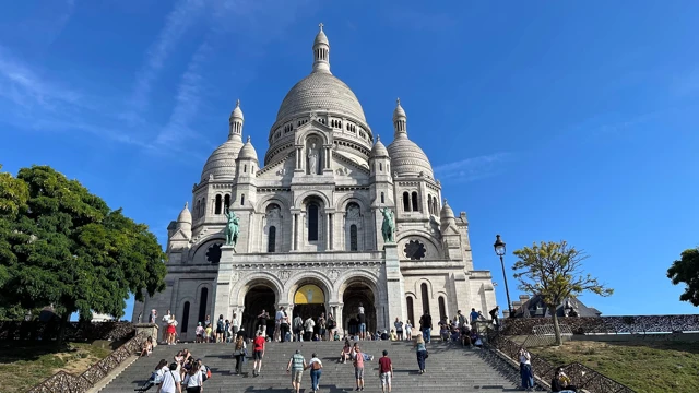 With VRtravelX, you ride the historic funicular up into Montmartre, the artistic hill of Paris. As you rise, the city slowly reveals itself – rooftops, treetops, and the golden dome of Les Invalides glinting in the distance. At the top, you step out and stand still for a moment. Paris unfolds beneath your feet. You cross the plaza, pass local artists sketching, and leave the street noise behind. Ahead of you, the white domes of Sacré-Cœur rise into the sky – calm, iconic, timeless.