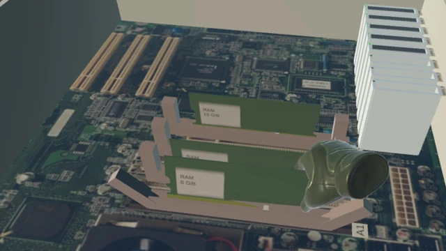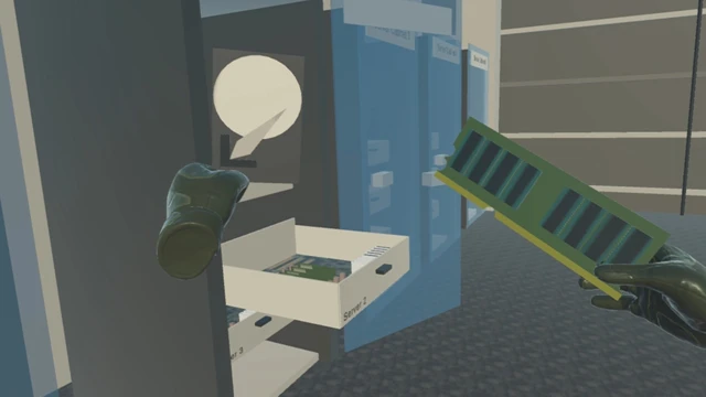 The VR4VET Cloud Engineering VR app simulates a cloud engineering workplace with different tasks to be performed in cloud engineering centre. The users can experience situations representing typical workplaces in a data and cloud engineering center, such as setting up tickets, selecting and replacing hardware components in different server cabinets.