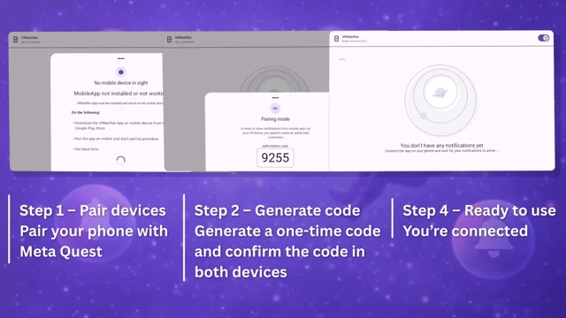 - Secure Bluetooth pairing - Easily connect your Android phone to Meta Quest 3 using a one-time authentication code.