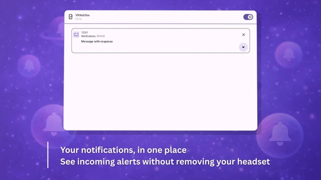 - Notification display and interaction - Receive, view, dismiss, and interact with incoming notifications in VR.
