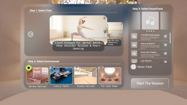 • Personalized VR yoga sessions tailored exactly to your mood and goals