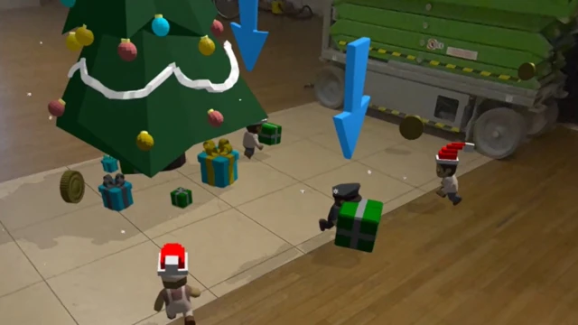 You interact using a real physical ball, turning your movement into playful mixed reality action. When you move, swing, or push your ball, the elves react with humorous, exaggerated animations that bring the scene to life. Your physical space becomes part of the gameplay, making every round dynamic and energetic.