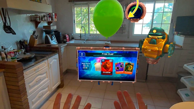 Thanks to mixed reality, Balloon Duel: The Keepy-Uppy Game turns your home into a lively playground where every hit feels real. The balloon bounces off your furniture, flies through portals, and dodges fans and other surprises that keep every match unpredictable.