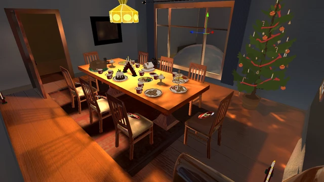 Invite your friends to enter this VR space specially crafted for Christmas. Together, you’ll find yourselves in a lifelike, intricately designed Christmas-themed house—from the spruce tree laden with ornaments to the cozy corners adorned with red velvet rugs, every detail captures the spirit of the season. You can unwind and soak in the gentle indoor lighting, watch the snowfall outside, feel the steady warmth of the fireplace, and admire the countless twinkling little decorations scattered throughout. There are no objectives or quests here—everyone is free to leisurely enjoy each other’s company or even play and frolic to their heart’s content.